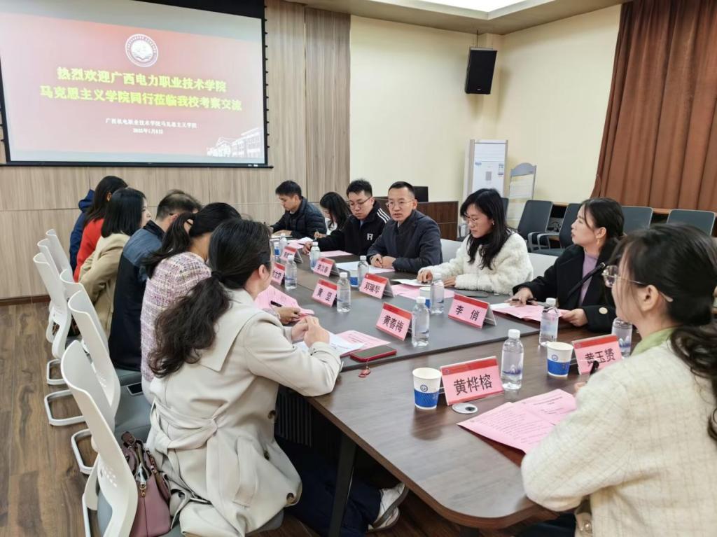 1月9日,广西电力职业技术学院马克思主义学院一行9人,在李次春院长的带领下,莅临我院进行交流指导。我院党委副书记韦文荣、副院长黄华燕及部分教师代表参加了本次交流活动。