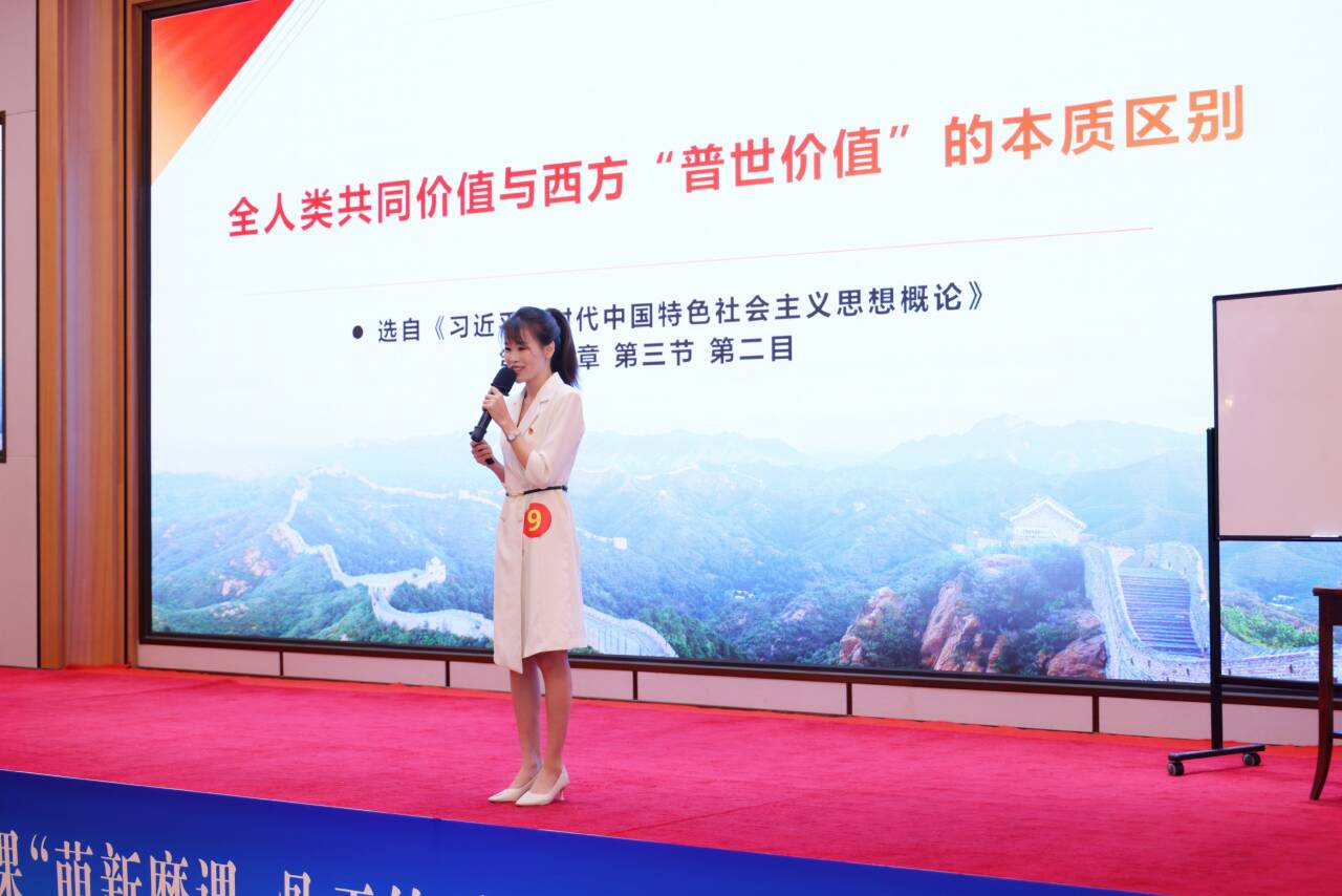 在“萌新磨课”组现场展示中,吴海燕老师以《全人类共同价值与西方“普世价值”的本质区别》为题进行教学展示。她凭借扎实的理论功底、创新性的教学设计以及春风化雨的课堂感染力,从12位现场展示教师中脱颖而出,斩获该组别最高奖—特等奖。其展示紧扣思想政治教育领域重大理论关切,通过思辨性教学设计与沉浸式语言表达,在价值引领与学理阐释之间实现完美平衡,赢得了在场专家和同行的高度评价和认可。