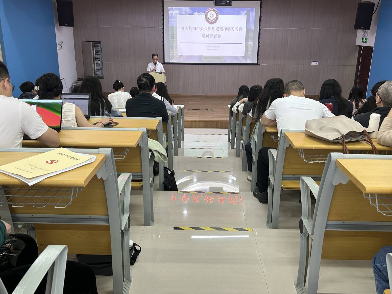 会议强调,全院全体党员要进一步提升政治站位,充分认识这次学习教育的重要意义,学院班子成员和各支部委员要带头学习,认真学习领会习近平总书记关于加强党的作风建设的重要论述,学习领会和贯彻落实中央八项规定及其实施细则精神。各党支部要根据学校关于学习教育的实施方案,研究部署本支部的学习教育工作安排。