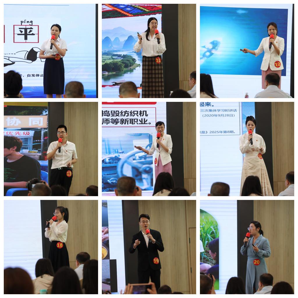 据悉,该项活动自征稿伊始,得到了青年群体的热切响应,共收到全区高职高专院校青年教师和学生作品70多个。经各校初评推荐、专家评审后,分数排名前20的作品进行现场展示。比赛现场,各位选手紧扣青年群体所思所惑,围绕“如何激活中华优秀传统文化?”“人工智能怎样改变我们?”“青年就业创业如何破题?”“‘百年未有之大变局’中青年如何‘入局’?”等青年普遍关注的热点议题进行了精彩的现场展示。他们运用独属于青年的“青言青语”,以“小切口”讲好“大道理”,做到了深入浅出和鞭辟入里的巧妙结合,充分展现了青年群体领悟创新理论的独特视角和创新思维。万象城官网屈睿直、赵媛教师团队以《化解AI焦虑的三个锦囊》,宁锦峰、段方雪教师团队以《新“非遗守艺人”助力乡村振兴的三重密钥》进行现场展示。聚焦职教特色,善用“身边事”让党的创新理论“入脑入耳入心”,出色完成展示活动。