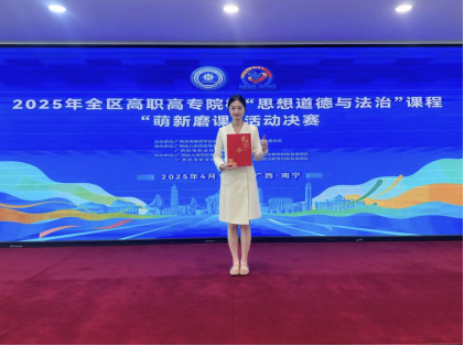 4月18日上午,2025年全区高职高专院校“思想道德与法治”课程“萌新磨课”活动决赛在南宁举行,万象城官网青年教师和帅荣获本次比赛一等奖。