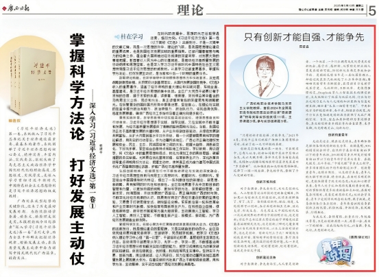 “只有创新才能自强、才能争先。”2021年4月,习近平总书记视察广西柳工集团有限公司时,道出了这一无可辩驳的实践真知。