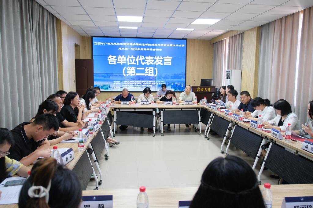 7月5日,2025年广西高校思想政治理论课多层级集群结对共建研讨会暨大中小学思政课一体化共同体集体备课会在广西大学隆重举行。本次会议由广西大学承办,我院积极协办,来自全区39所大中小学的57位思政课教师齐聚一堂,共话思政课建设新路径,共谋大中小学思政课一体化发展新篇章。我院马克思主义学院黄华燕副院长参加会议并作发言。