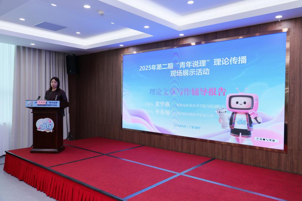 广西日报理论评论部主任李秀翔作理论文章写作辅导报告。报告梳理了“青年说理”栏目创办以来,在汇聚青年智慧、发出理论强音方面的积极探索与丰硕成果,精准把脉当下理论写作的共性症结,强调理论文章写作要胸怀“国之大者”、聚焦“民之关切”,将“大道理”转化为“微叙事”,用“小切口”折射“大时代”,为广大青年指明破局之道,现场反响热烈。