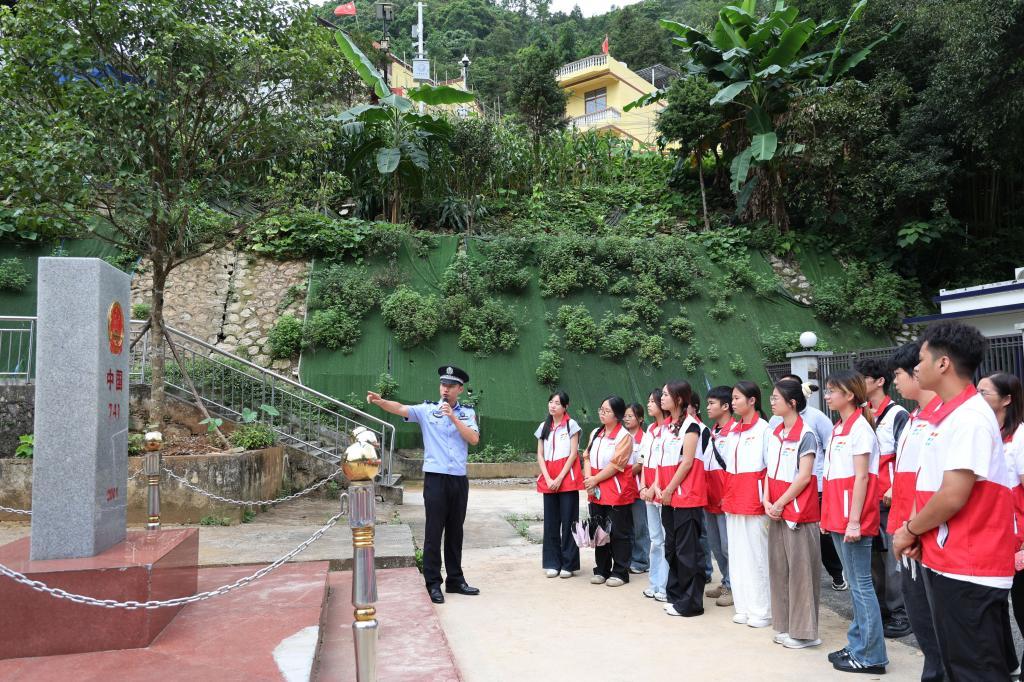 实践团走进靖西市的龙邦口岸,开展“厚植爱国情怀”爱国主义教育活动。通过我为祖国巡边、我为界碑描红、聆听戍边故事等活动,开展了一场意义深远的“行走的思政课”。