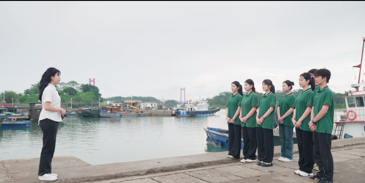 作品《平陆运河——从百年构想到青年担当》的背后,是团队师生深入运河沿线的扎实实践。在指导老师的带领下,陈丽佳、曾佳等8名同学走进钦州仙岛公园,在孙中山先生铜像前感悟“南方大港”的百年梦想;登上龙门大桥,俯瞰运河入海口的壮阔景象;走访钦州港码头,亲身体验“江海联运”的蓬勃活力;驻足钦江大桥,实地观察运河建设与生态保护的和谐共生。更值得一提的是,比赛中团队创新运用AI技术生成孙中山先生的数字形象,实现了一场跨越百年的对话,极大地增强了课堂的感染力和说服力。这段深入运河沿线的实践经历生动说明,只有真正走进现场、亲身体验,才能深刻理解国家战略的深远意义,才能讲好壮美广西的发展故事。
