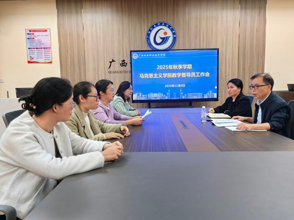 为全面推进2025-2026学年学校思政课课堂教学提升行动,11月4日,学院组织召开校级和院级督导员工作会议。会议由学院副院长韦文荣主持,校级及院级督导员、学院领导班子成员及相关教师参加。