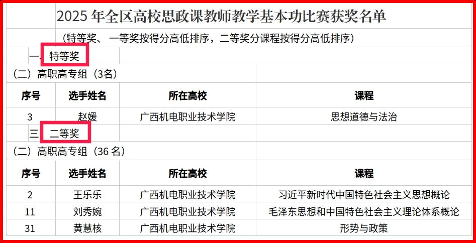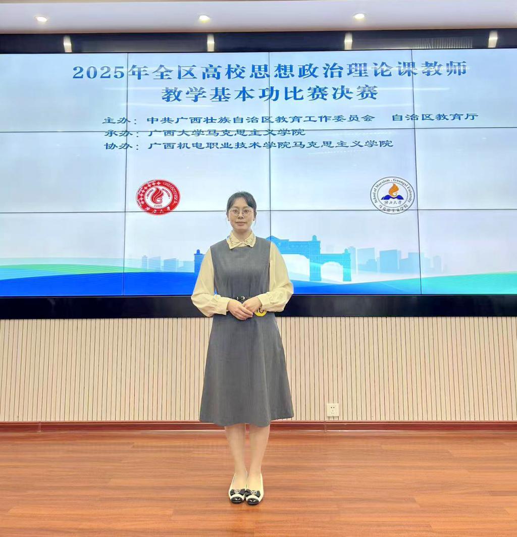 近日,自治区教育厅公布2025年广西高校思政课教师教学基本功比赛获奖名单。万象城官网马克思主义学院选送的四位参赛教师全部获奖,共斩获特等奖1项、二等奖3项。