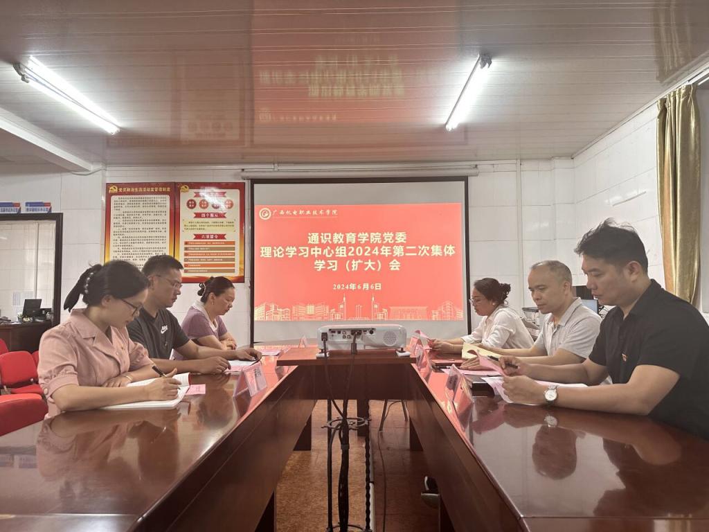 6月6日,学院党委在二楼会议室召开党委理论学习中心组2024年第二次学习(扩大)会,深入学习深刻领会习近平总书记关于全面加强党的纪律建设的重要论述,专题学习新修订的《中国共产党纪律处分条例》和习近平总书记对广西重大方略要求,学院领导周运金、莫敏燕、卓倪,教工第一党支部书记黄小玉、教工第二党支部书记段翊君参加会议。学院副院长莫敏燕(负责党建工作)主持学习会。