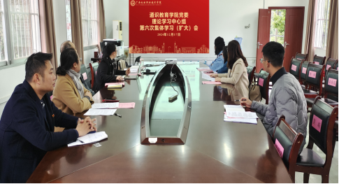为深入学习贯彻习近平法治思想,12月17日下午,学院党委在三楼会议室召开党委理论学习中心组2024年第六次学习(扩大)会。会议由通识教育学院党委副书记梁瑾主持,学院领导、党支部委员和组织员参加。