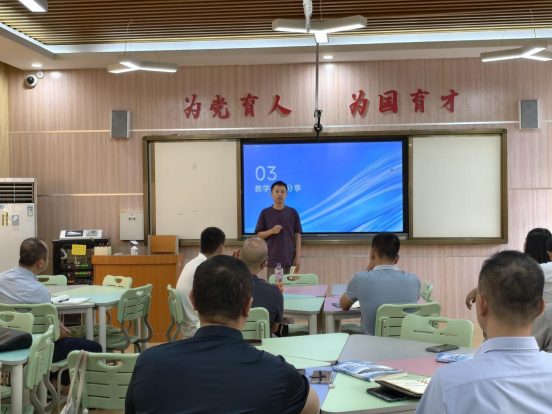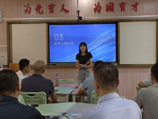为促进教学经验共享、激发教学创新思维,会议还设置教学心得分享环节,邀请有参赛经历的年轻教师陈丽婷和外聘教师曾党生作教学分享。陈丽婷结合自身教学实践,分享了提升学生课堂抬头率的实用方法,同时针对备课与备赛提出建议,为教师教学与竞赛工作提供参考。曾党生则将门罗激励序列融入教学,阐述如何通过环环相扣的教学环节调动学生积极性,让课堂“活”起来、“动”起来。