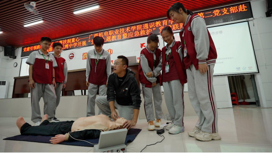 为深入践行“党建引领、业务融合、服务边疆”理念,持续擦亮“强国行”党建品牌,近日,通识教育学院教工第二党支部赴广西防城港桃花湾中学开展“强国行”系列第三站特色帮扶活动。这是支部继2024年12月走进高新区彼诺幼儿园、2025年5月赴东兴市江平中学后,第三次将急救知识送到边疆校园,并首次在帮扶活动中系统引入AED(自动体外除颤器)使用教学,进一步提升边疆师生应急救护能力。