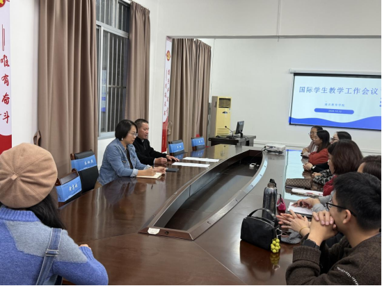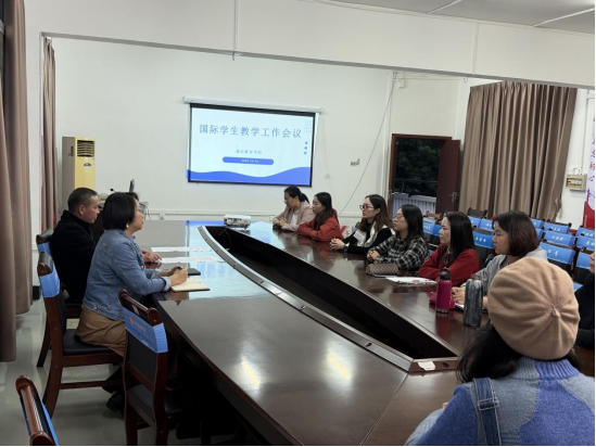 12月12日,通识教育学院组织召开国际学生教学管理专题工作会议。会议围绕国际学生管理办法学习、教育教学工作要求及国际学生课程设置等三个内容展开。学院党委书记、院长黄金来,教学副院长莫敏燕及全体承担国际学生教学任务的教师参加会议。