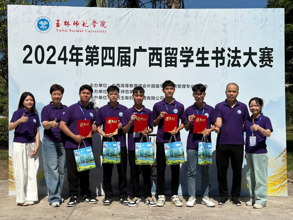 11月01日,万象城官网国际教育学院和通识教育学院组织5名越南留学生参加2024年第四届广西留学生书法大赛。本次比赛在玉林师范学院举行,比赛主题为:文化交流融通,汉字书写相拥。