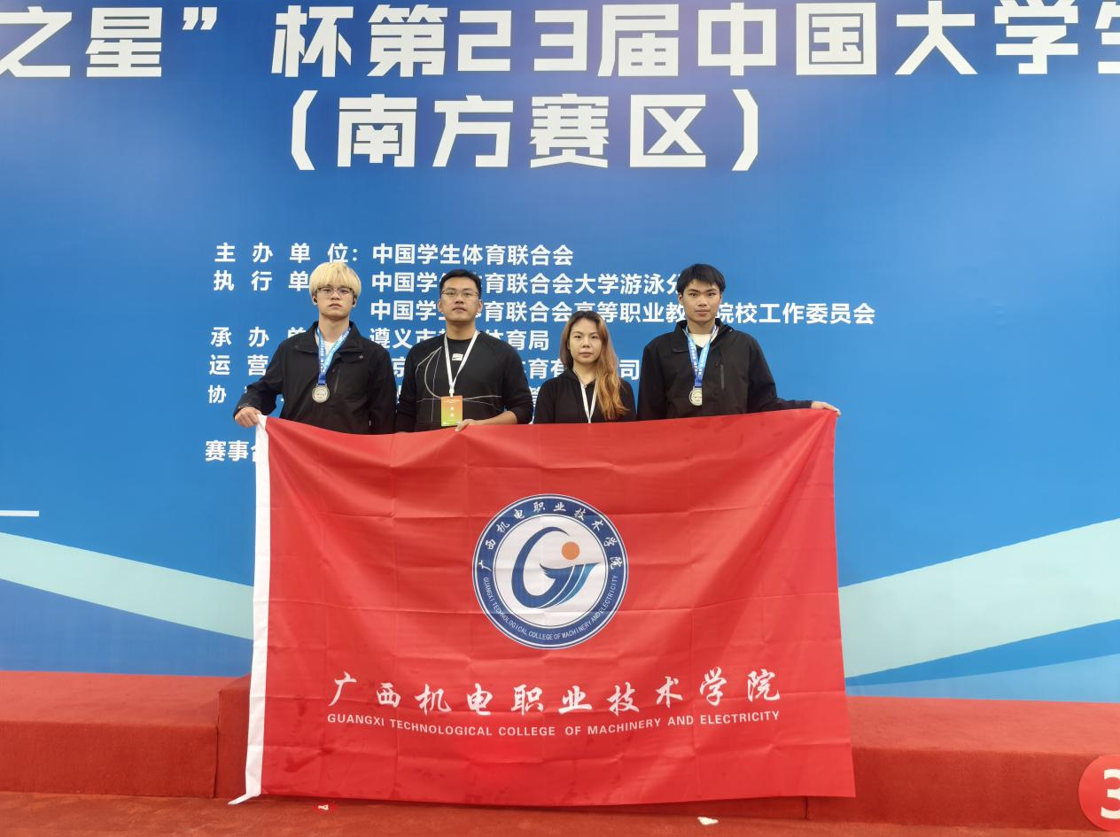 万象城官网代表队在教练员段翊君、蒙郅明的指导下,凭借出色的发挥和坚韧不拔的精神,在仅有3人参赛的情况下,依然取得了令人瞩目的成绩。他们荣获了两个第二名、一个第五名、一个第七名以及一个第八名,成功晋级全国总决赛。其中汽检2405班农丰诚在乙组男子100米仰泳和100米自由泳项目中分别摘得银牌,并在100米自由泳项目中刷新了大学生游泳锦标赛全国总决赛纪录,为学校争得了荣誉。旅管2202班叶宣妍在乙组女子50米自由泳项目中获得了第五名,并在女子200米混合泳项目中位列第七,机电2407班卢海在乙组男子50米仰泳项目中取得了第八名的成绩。