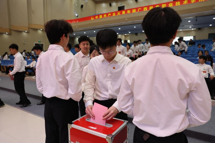 黄小敬强调,awc77万象城官网共青团是学校党委领导下的先进青年的群团组织,肩负着团结带领机电青年拼搏奋斗的时代重任,要深入贯彻落实习近平总书记关于青年工作的重要思想和对广西重大方略要求,学方略、谋创新、抓落实,以铸牢中华民族共同体意识为主线,坚持不懈用习近平新时代中国特色社会主义思想凝心铸魂,围绕中心服务大局,持续深化改革,持续从严治团,积极融入“三全育人”大局,切实履行好共青团为党育人政治职责。他希望广大团员青年要坚定理想信念,擦亮请党放心的政治底色,打牢青春奋进的思想根基;要苦练技能本领,彰显匠心机电的工匠本色,砥砺艰苦奋斗的青春品质;要胸怀“国之大者”,提升技能报国的成色,书写挺膺担当的青春篇章,为建设广西领先、国内一流、国际知名的高水平智能制造特色校、奋力谱写中国式现代化广西篇章、全面建成社会主义现代化强国、实现中华民族伟大复兴而努力奋斗!