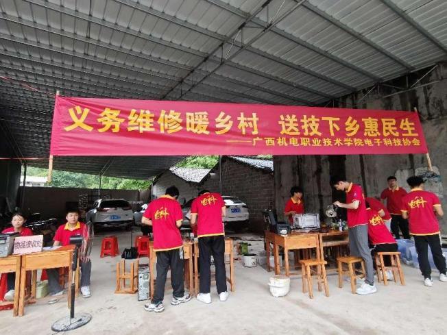 学校引导学生参与基层建设,积极投身乡村振兴实践。近五年共有10个师生团队163人次参与公益志愿服务活动,多次获评广西大中专学生志愿者暑期文化科技卫生“三下乡”社会实践活动重点团队。此外,学校注重培养学生的责任心与奉献精神,在疫情防控、全国第一届学生(青年)运动会、中国—东盟博览会中组织多批次学生参与志愿者活动。