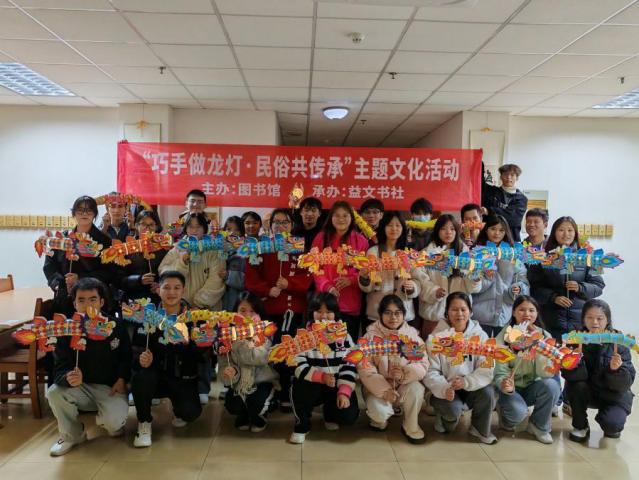 ↑社团开展“巧手做龙灯 民俗共传承”主题文化活动