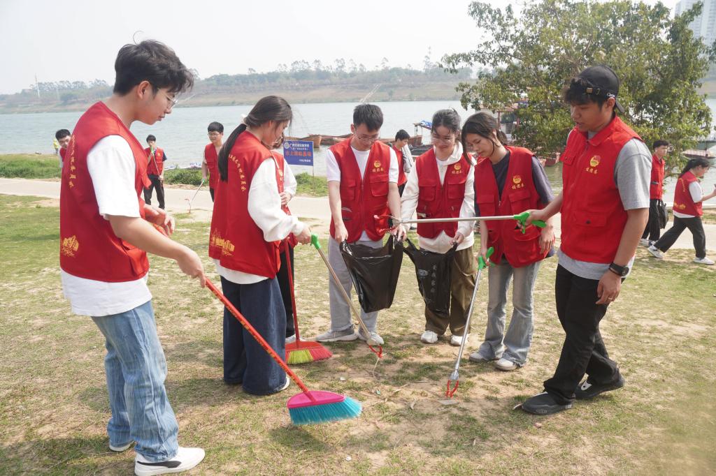 志愿者们在邕江江畔进行环境清洁工作