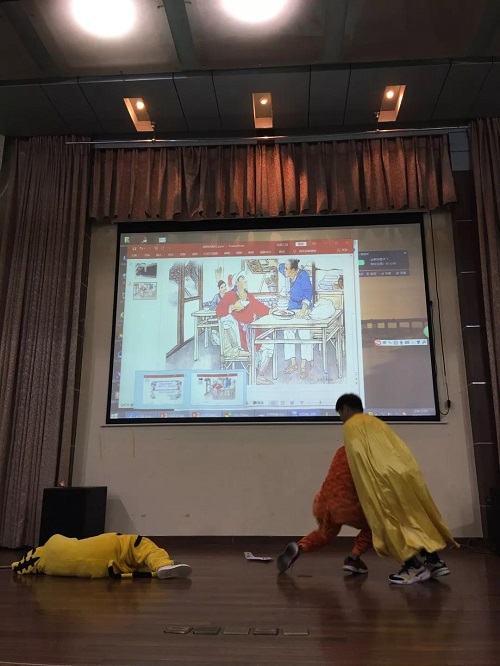 台上的同学们正以流利标准的英语和丰富多彩的肢体语言塑造着各种精彩角色。整个表演过程,点赞声不断,掌声不断。