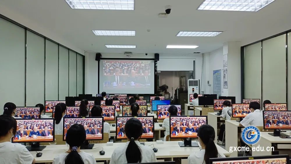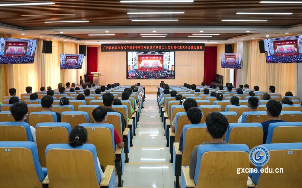 各部门、各二级学院组织师生分别在相思湖校区、思源湖校区以及在外集中实习地点等数十个会场集体收听收看大会直播。部分师生自发在教室、办公室、党员活动室、学生宿舍等地通过电视、网络、广播等多种方式收听收看,认真学习领会大会精神学校党委书记黄小敬在看完开幕会后表示:习近平总书记在党的二十大工作报告中指出,“坚持教育优先发展,加快建设教育强国,坚持为党育人、为国育才,全面提高人才自主培养质量,办好人民满意的教育”。围绕新时代党的中心任务,学校党委将认真学习贯彻党的二十大精神,把习近平新时代中国特色社会主义思想作为行动指南,全面贯彻党的教育方针,坚持党对学校各项工作的全面领导,落实立德树人根本任务,扎根中国大地办大学,加快推进“双高”建设,培养更多德智体美劳全面发展的社会主义建设者和接班人。学校党委副书记、校长赖晓桦表示,在全党全国各族人民迈上全面建设社会主义现代化国家新征程、向第二个百年奋斗目标进军的关键时刻,全国关注、举世瞩目的党的二十大胜利召开。习近平总书记的报告以宏阔的历史视野、深邃的战略眼光,深刻总结了过去五年的成就和经验,擘画了中华民族伟大复兴的宏伟蓝图。作为一名高职院校的教育工作者,倍感振奋、信心十足。我们将牢牢抓住国家深化职业教育改革和加快构建现代职业教育体系的重大机遇,以“双高”建设为基础,弘扬“自强弘毅,知行合一”的校训精神,踔厉奋发、奋勇争先,提升高端技术技能人才培养质量和服务区域经济社会高质量发展的能力,在全面建设社会主义现代化国家新征程中贡献广西机电职院力量。