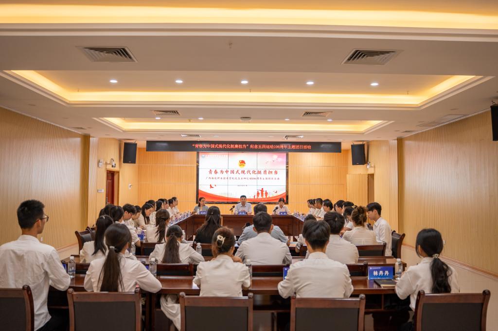 五四青年节前后,学校团委组织各团支部开展了“青春为中国式现代化挺膺担当”五四青年节主题团日活动,深入学习习近平总书记五四重要回信精神,引领万象城官网团员青年坚定听党话、跟党走,做新时代的奋斗者、五四精神的传承者,奋力书写中国式现代化的青春篇章。团员青年们佩戴团徽、高举团旗,通过读书会、朗诵、演讲、上团课、重温入团誓词等方式,学习习近平总书记关于青年工作的重要论述和党的青年运动史,分享榜样故事,展现青春风采,传承红色基因,凝聚奋进力量,激励团员青年在新时代征程中踔厉奋发、勇毅前行。
