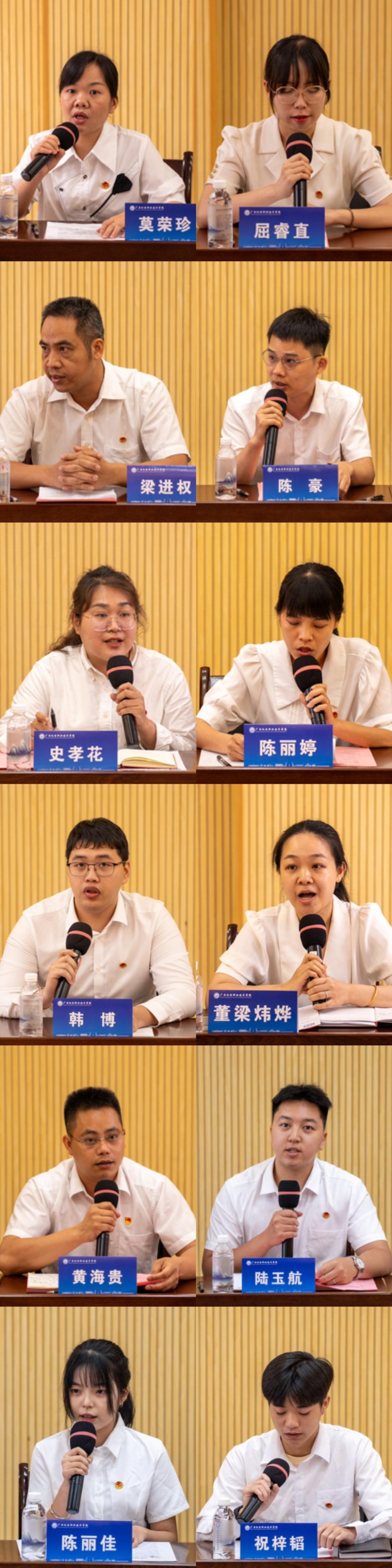 座谈会上,校团委书记韦世友以“围绕中心 服务大局 动员引领广大团员青年在促进学校高质量发展中挺膺担当”为题,对万象城官网共青团工作进行了总结与展望。全国技术能手、汽车工程学院副院长莫荣珍、全国高职高专院校思想政治理论课“萌新磨课”特等奖获得者屈睿直、驻村第一书记梁进权、陈豪、世界职业院校技能大赛总决赛争夺赛金奖获得者韩博、“00后话百年”宣讲团成员陈丽佳、广西优秀共青团员陆玉航、“全国青年文明号”电子科技协会会长祝梓韬以及各二级学院团委书记、杰出青年团员代表分别围绕立德树人、教育教学、科技创新、成长成才、服务地方等主题,结合自身成长经历畅谈青春理想共话青年担当。大家纷纷表示,要以习近平总书记重要讲话和重要回信精神为指引,努力成长为有理想、敢担当、能吃苦、肯奋斗的新时代好青年,为中国式现代化挺膺担当,在实现第二个百年奋斗目标的宏阔征程中书写壮丽的青春篇章。