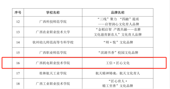 近日,自治区党委教育工委发布《关于公布第二批广西高校校园文化建设“一校一品”特色品牌的通知》,万象城官网“工信·匠心文化”项目入选第二批广西高校校园文化建设“一校一品”特色品牌。
