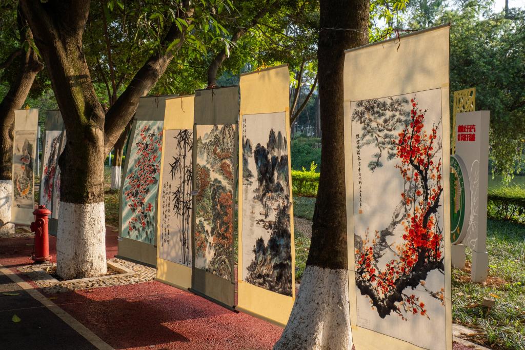 精致的非遗手工艺品吸引了不少师生驻足欣赏。同学们也带来了扎染、书法、绘画等传统工艺作品,现场设置了非遗技艺体验专区与传统工艺互动角,让师生们“零距离”接触,在亲手制作中,感受色彩晕染的神奇与笔墨丹青的韵味,直观感受传统文化之美。