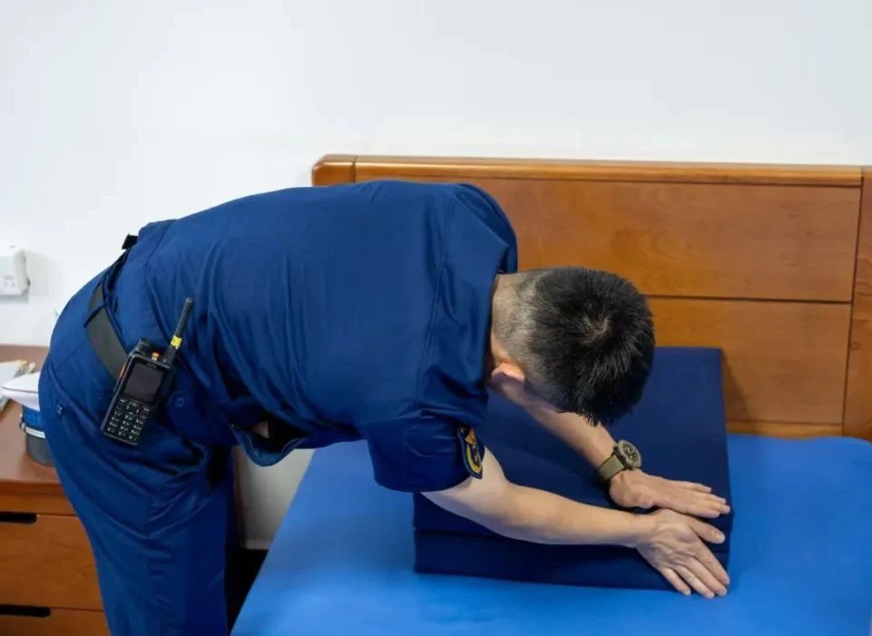 在生活区,消防员以一堂生动的内务整理课,向同学们诠释纪律与标准的力量。“三分叠,七分修”,消防员一边讲解叠被子口诀,一边展示操作要领,动作干净利落、精准到位。同学们认真观摩,深刻体会到消防员日常纪律重要性和严格标准的意义。
