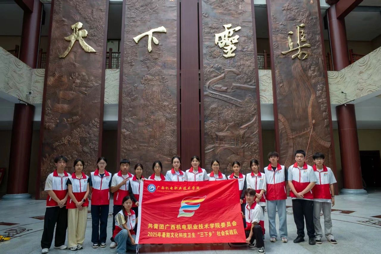 在兴安灵渠博物馆,实践团队员们被丰富的历史资料与精妙的水利模型深深吸引。讲解员详细介绍了灵渠的历史渊源:这条沟通湘漓的“黄金水道”,在古代不仅肩负着航运重任,更是灌溉农田的关键水利设施,其生态调节功能延续至今。展品前,队员们对古人的智慧赞叹不已,更深刻体会到在这片红色土地上,传承生态文明是青年一代不可推卸的使命。