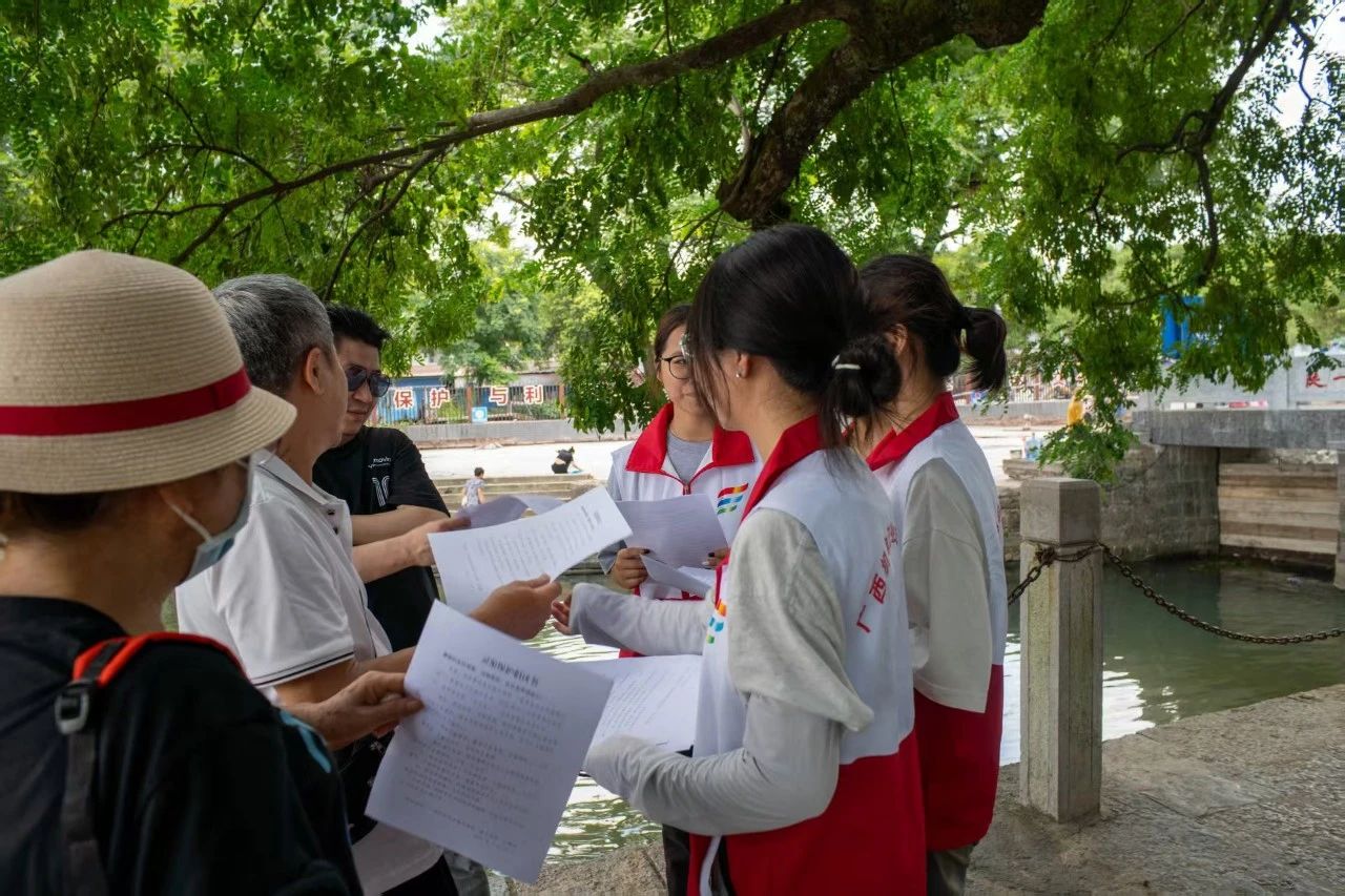 走出博物馆后,实践团迅速投入灵渠生态保护行动,沿岸细致清理垃圾,确保不留死角。同时,队员们还热情地向游客和当地居民发放《灵渠生态保护倡议书》,耐心讲解环保知识,呼吁大家共同守护灵渠的生态环境。实践团队员们用汗水诠释着青年一代对绿水青山的守护,以实际行动践行着生态保护的责任。