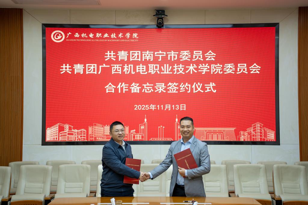 随后,在全体与会人员的见证下,双方签署合作共建协议书,明确将建立四项核心机制,并在共青团品牌建设、智能制造人才培育、大学生就业创业、大型赛会志愿服务、青年参与基层社会治理等重点领域,达成深度合作共识。