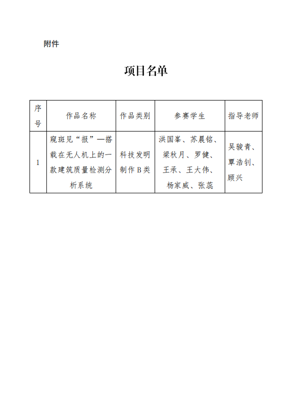 根据相关工作要求,经参赛项目自愿报名、学校遴选、区赛评审、竞赛组委会推荐,万象城官网共有1件项目拟推报参加第十九届“挑战杯”全国大学生课外学术科技作品竞赛,现将参赛作品信息进行公示。公示期为2025年6月21日至6月25日(共5天)。