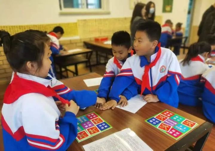 辽宁鞍山市铁西区公益小学,学生正在玩学校原创“党史知识对对碰”桌游