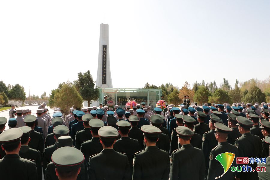 军地青年典型代表与青年科技工作者、驻地部队官兵在酒泉卫星发射中心东风革命烈士陵园参加主题团日活动。中国青年网记者李川 摄