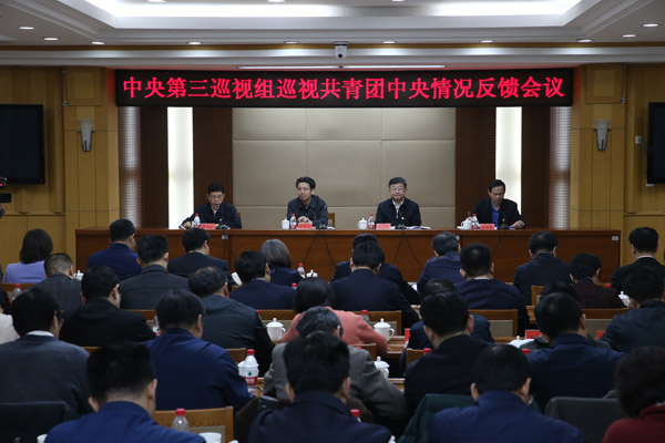 近日,中央第三巡视组向共青团中央反馈巡视情况。中央组织部副部长吴玉良主持召开向团中央书记处第一书记贺军科的反馈会议,出席向团中央领导班子反馈会议,对巡视整改提出要求。会议向团中央主要负责人传达了习近平总书记关于巡视工作的重要讲话精神,中央第三巡视组组长龚堂华代表中央巡视组分别向团中央主要负责人和领导班子反馈了巡视情况。贺军科主持向领导班子反馈会议并就做好巡视整改工作讲话。