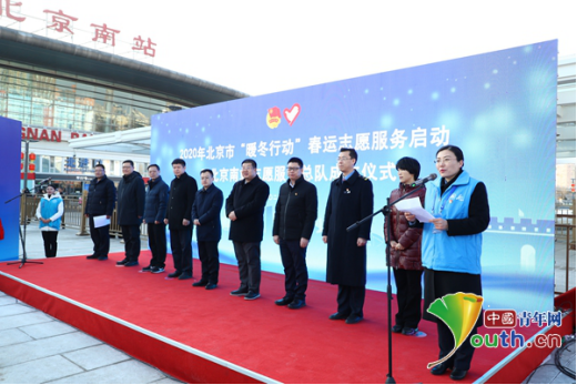 北京市“暖冬行动”春运志愿服务启动。图为活动启动仪式现场。北京团市委 供图