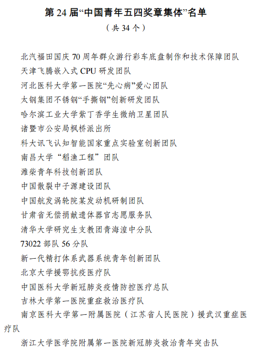 2. 第24届“中国青年五四奖章集体”名单