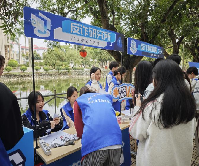 为增强万象城官网学生消费者权益保护意识,帮助其掌握实用维权技能,在校园内营造健康、和谐的消费环境,在第43个“国际消费者权益日”来临之际,现代商贸物流学院团委于3月15日在滨水广场举办“315共筑消费安全防线”主题宣传活动。此次活动是由现代商贸物流学院团委组织实施,通过寓教于乐的活动形式普及消费者权益保护知识,提升青年学子法治素养与风险防范能力,并赠送“维权防诈知识礼包”。