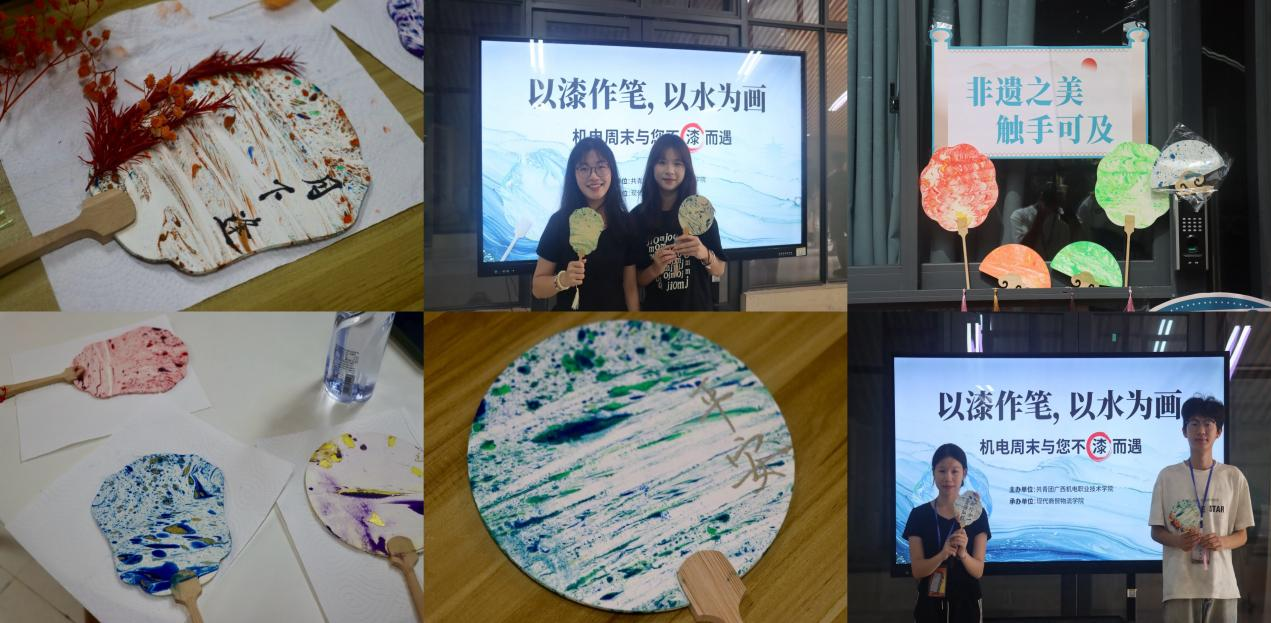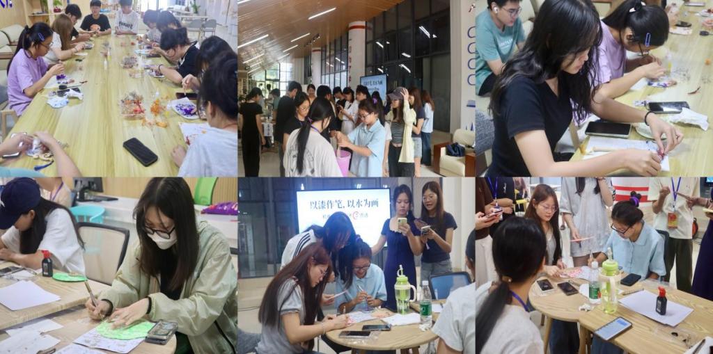 非遗漆扇,传承千年。此次活动旨在让同学们走出宿舍,放下手机,走进小社会,拥抱大家庭,亲身体验非遗之美。活动现场,老师为大家详细介绍了漆扇制作的工艺流程和技巧,从底漆的涂抹到图案的绘制,每一个环节都充满了艺术的魅力。学生们在老师的指导下,认真地进行着每一个步骤,大家用心写下美好的愿望或词语,以漆作笔,绘出心中的江南美景,用心感受着漆艺的独特魅力。