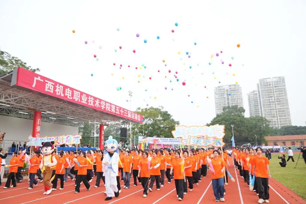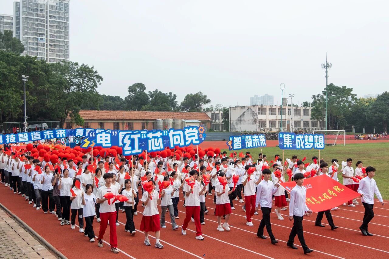 各代表队身姿挺拔,队列严整,步伐整齐,活力满满地通过主席台前,嘹亮的口号此起彼伏,用昂扬的姿态诠释着机电人蓬勃向上的精神底色。