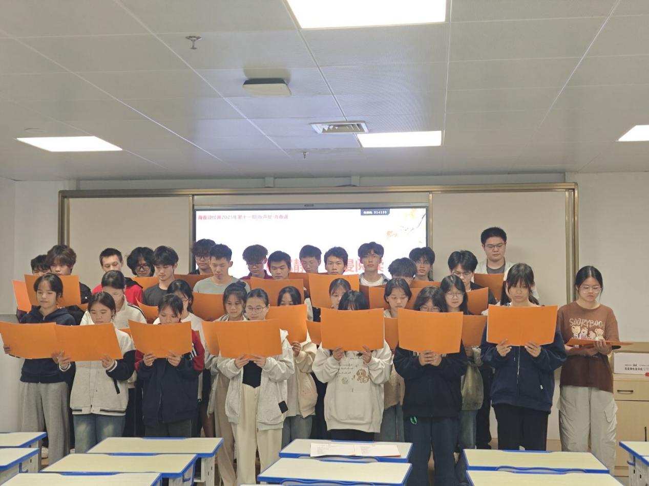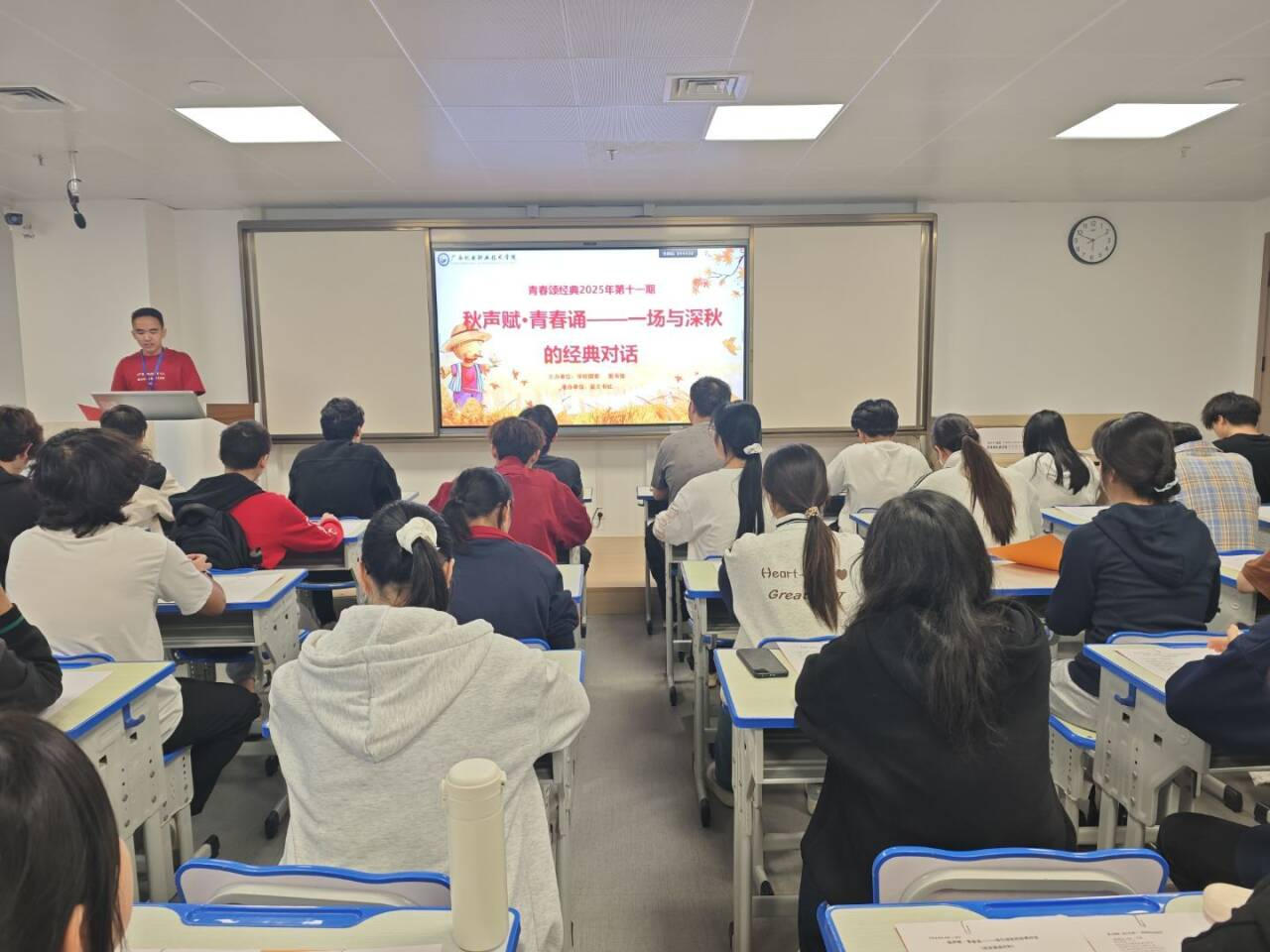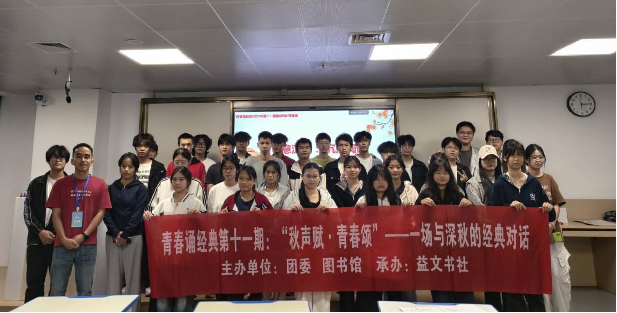 2025年11月11日,“秋声赋·青春诵——一场与深秋的经典对话”暨“青春颂经典”第十一期活动在江南校区成功举办。本次活动由校团委、图书馆联合主办,益文书社承办,来自各二级学院的50多名学生参加了本次活动。