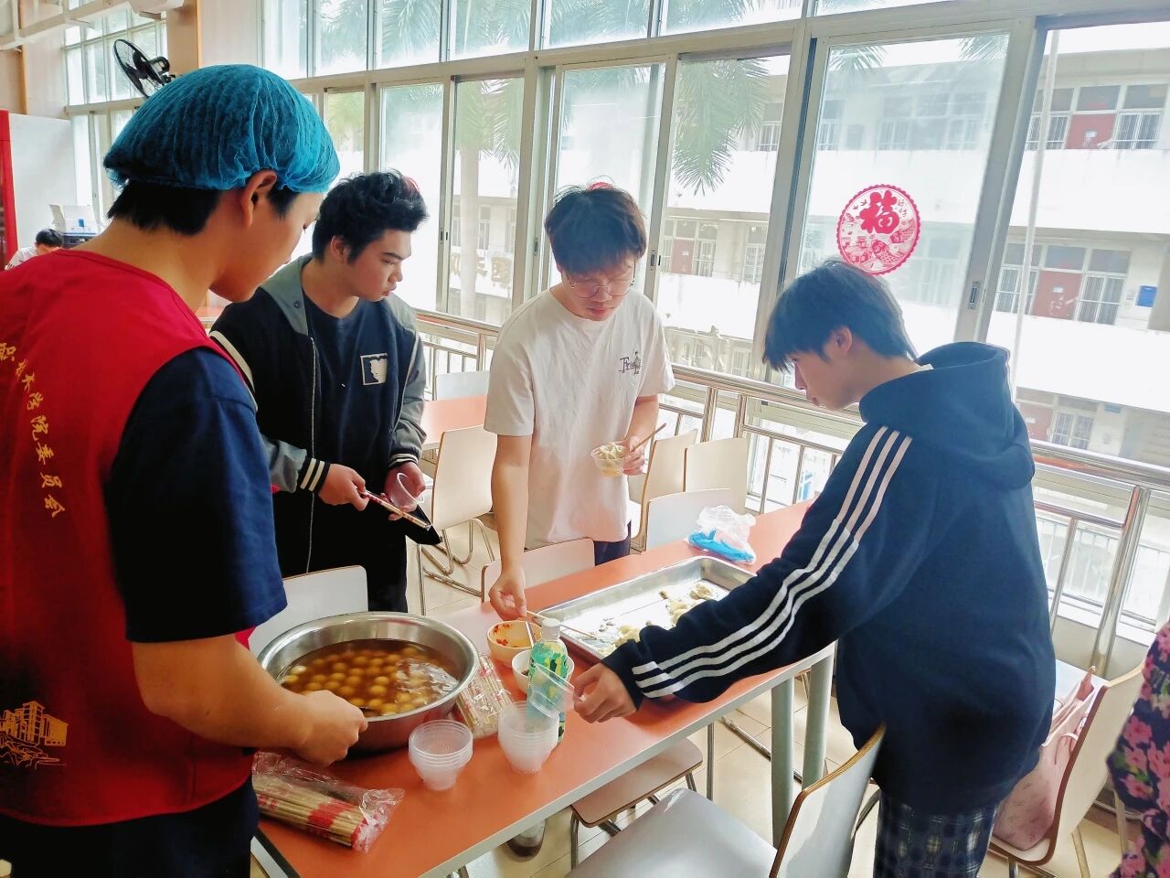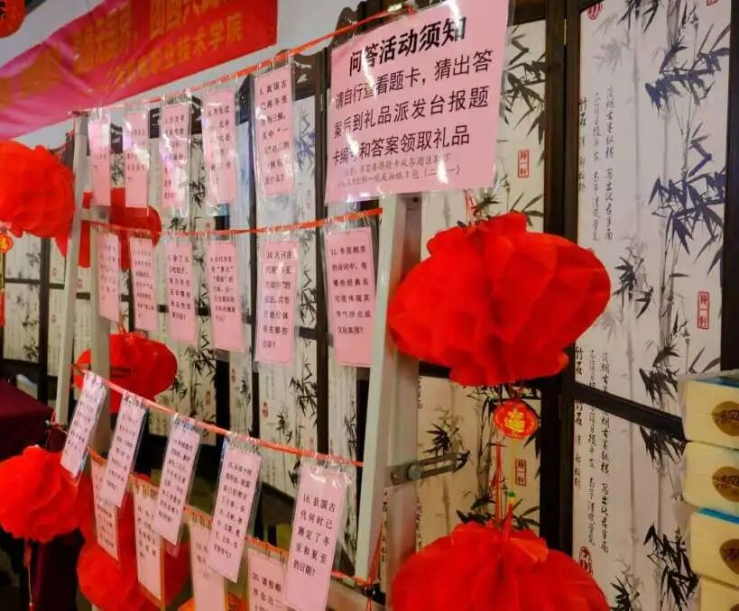 食堂里的猜字谜活动更是掀起了活动的小高潮。趣味十足的谜题吸引同学们纷纷驻足,大家或独自思索,或组队探讨,猜对谜底的同学喜笑颜开,现场洋溢着欢乐的节日氛围。