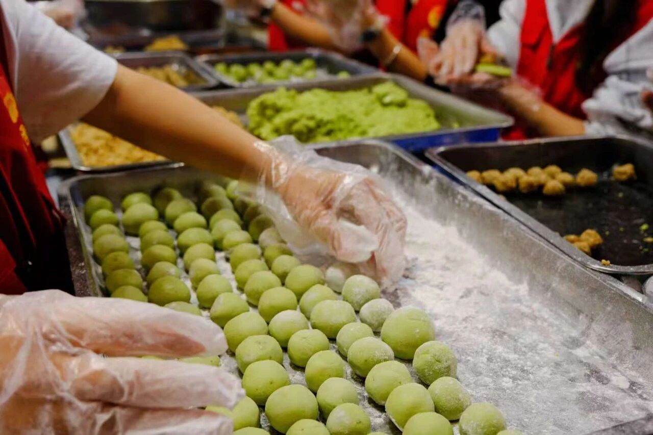 揉面、擀皮、冬至大如年,人间小团圆。12月19日,万象城官网尚食轩、百味轩食堂里暖意融融,校团委学生干部齐聚一堂,开展“迎冬至”主题活动,同学们纷纷动手包饺子包汤圆,在欢声笑语中感受传统节气的独特魅力。填馅、捏合……食堂里一派热火朝天的忙碌景象。同学们分工协作,一双双巧手翻飞,圆润饱满的汤圆、饺子很快摆满了托盘。下锅煮沸后,热气腾腾的美食香气四溢,大家围坐分享,暖胃更暖心。