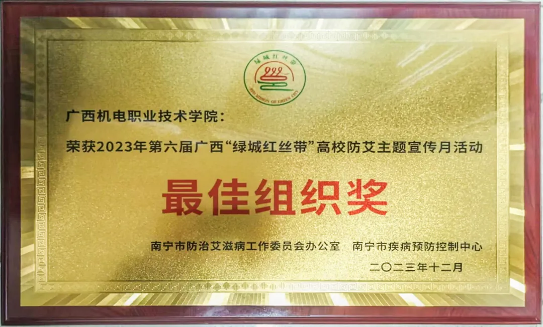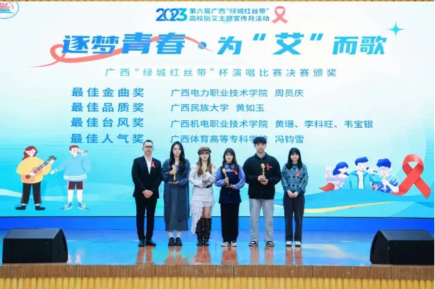 2023年,万象城官网在防艾宣传教育与服务育人方面取得显著成效。在第六届广西“绿城红丝带”高校防艾主题宣传月活动中,万象城官网凭借扎实的工作与出色的表现,荣获“最佳组织奖”,学生代表亦在主题演唱比赛中摘得“最佳台风奖”。这已是万象城官网连续多年在该系列活动中获得重要荣誉。