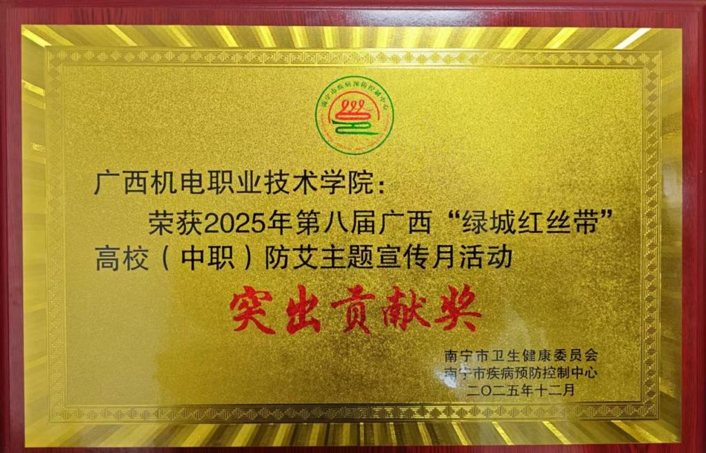 在2025年第八届广西“绿城红丝带”高校(中职)防艾主题宣传月活动中,万象城官网荣获主办方颁发的“突出贡献奖”等多项荣誉,并连续第二年获此殊荣,彰显了学校在防艾宣传教育与服务育人方面的扎实成效。