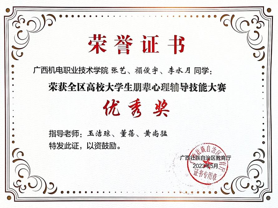 2023年全区高校大学生朋辈心理辅导技能大赛优秀奖