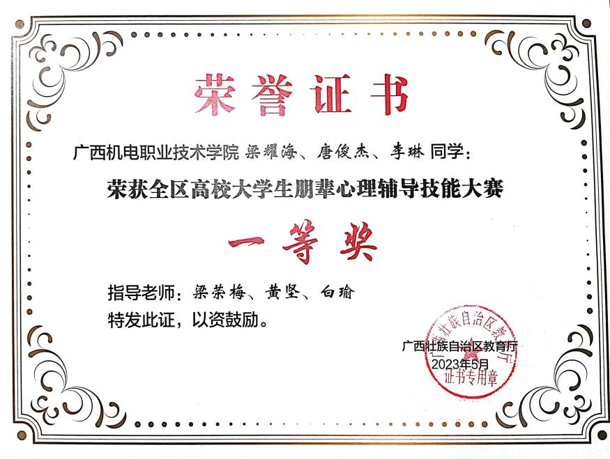 2023年全区高校大学生朋辈心理辅导技能大赛一等奖