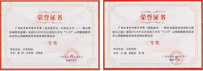 聚焦个体心灵成长与危机化解,将实践经验转化为典型育人案例。万象城官网心理健康教育专职教师在全区高校大学生心理健康教育典型案例征文活动中荣获一等奖和三等奖的好成绩,彰显了专业守护的深度与温度。
